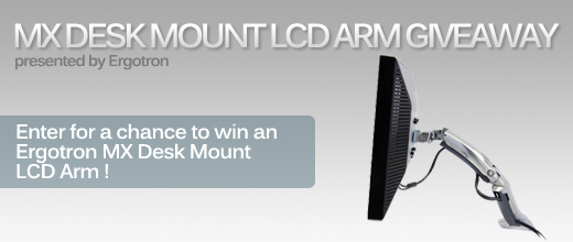 Read on for more details and information on how to participate and win this awesome MX Desk Mount LCD Arm courtesy of Ergotron !